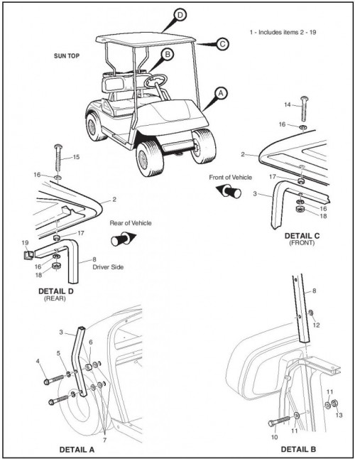 | 19 | Sun Top Kit, Golf Car | 75040-G** | Weather Protection - Golf Car | ||
