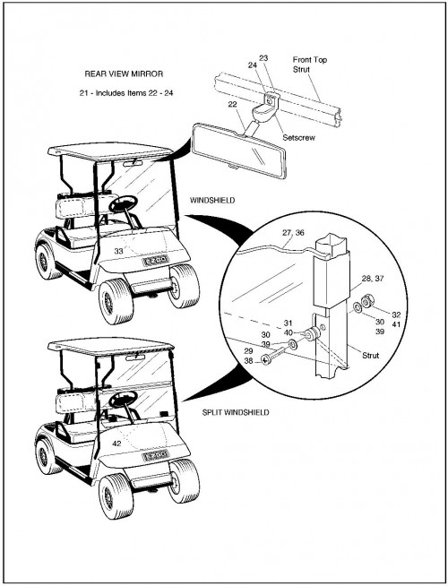 | 12 | Rear view mirror | 19528-G2 | Requires sun top, See weather protection (golf car) | ||
